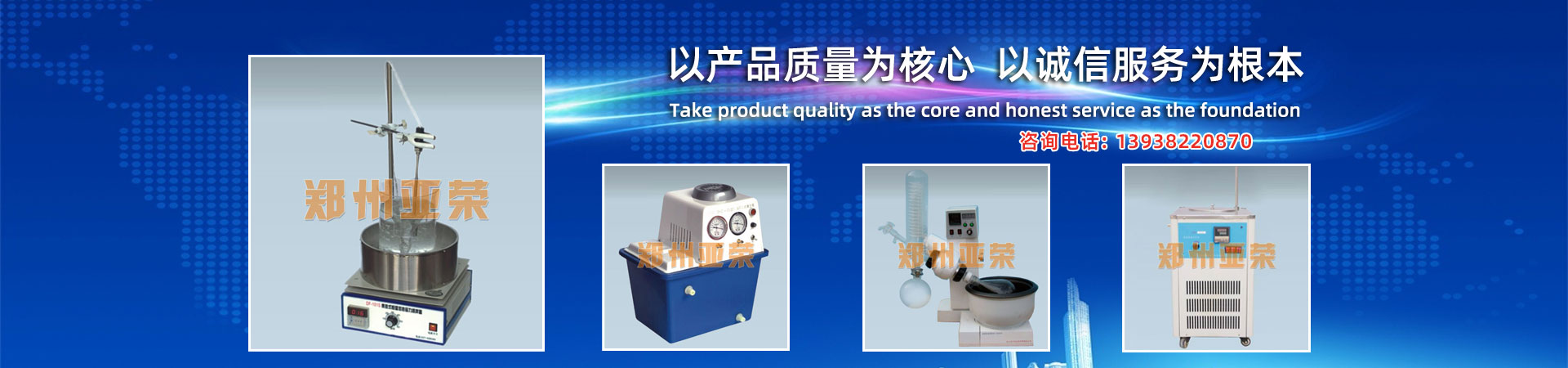 鄭州市亞榮儀器有限公司是主要銷售教學儀器的專業廠家,主要生產旋轉蒸發儀雙層玻璃反應釜旋轉蒸發器循環水真空泵玻璃儀器氣流烘干器低溫冷卻液循環泵真空抽濾器電熱鼓風干燥箱、真空干燥箱、水熱合成反應釜、高壓反應釜、數顯恒溫電熱套、高溫油浴鍋、磁力攪拌器、超聲波清洗器、水(油)浴鍋、冷凍干燥機、智能玻璃恒溫水浴、水槽,臺式高速離心機、紫外分析儀、控溫儀、振蕩器、微波化學反應器、顯微熔點測定儀、聚四氟乙烯攪拌棒、攪拌塞、攪拌子、升降臺等多種型號的教學儀器。